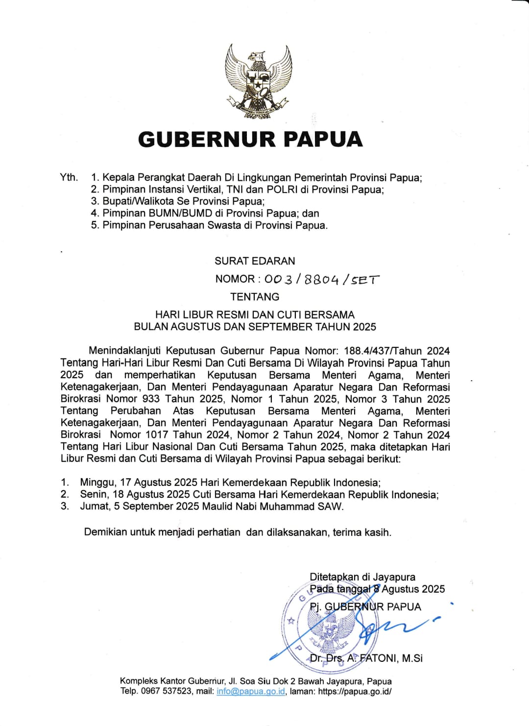- Surat Edaran Gubernur Hari Libur dan Cuti Bersama Bulan Agustus dan September